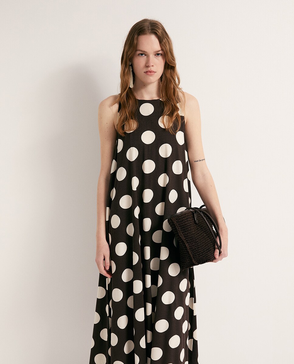• Vestido evasé estampado floral de manga sisa. Cierre con botón en espalda. Algodón 100%