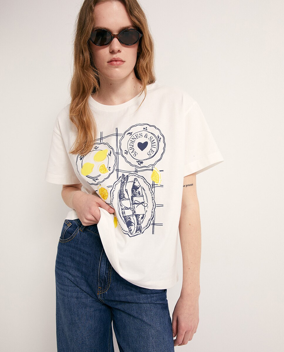 • Camiseta de manga corta y cuello redondo con estampado. Algodón 100%