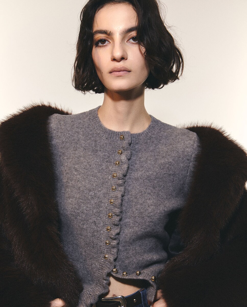 • Chaqueta de punto con botones metalizados y volantes