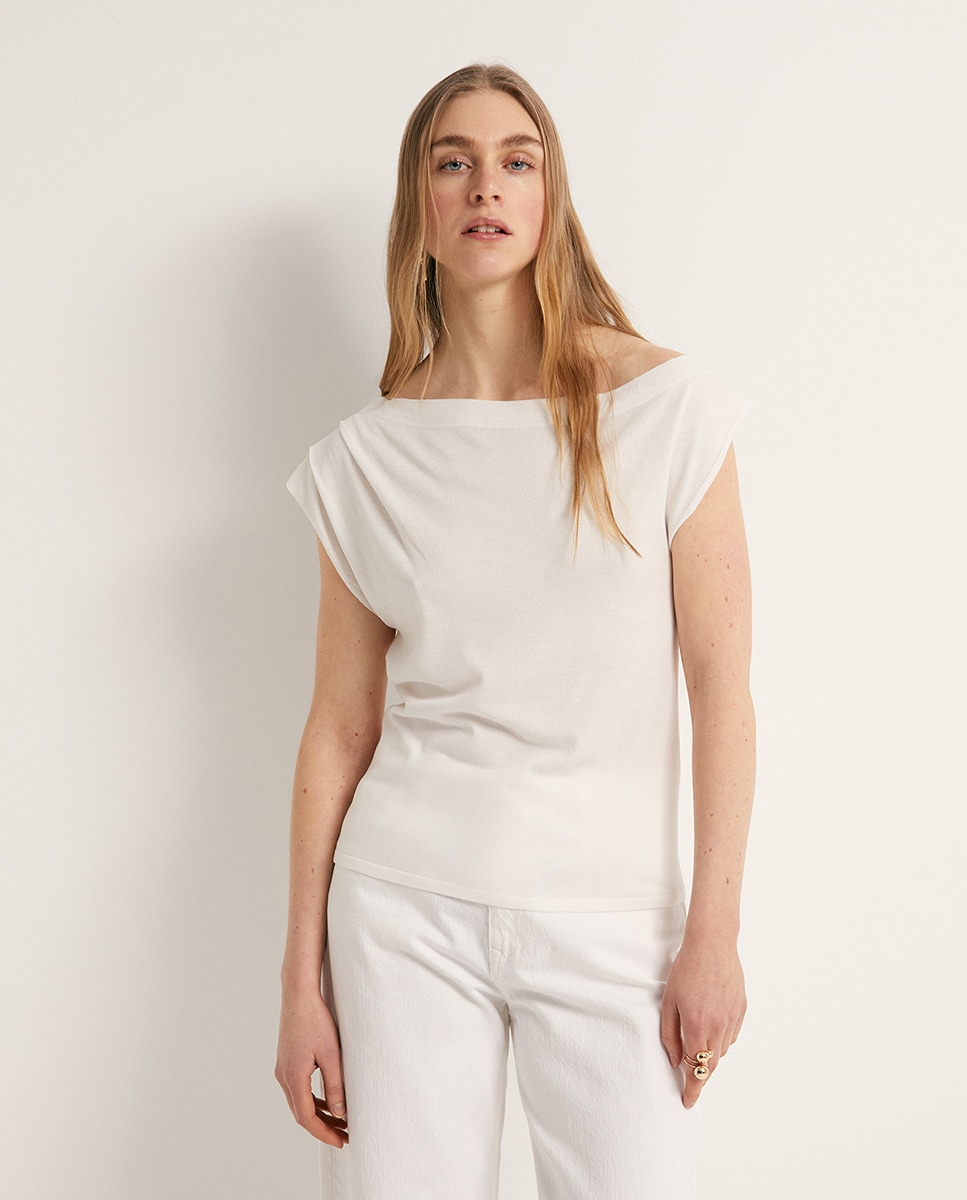 • Top punto de manga corta asimétrica con cuello barco