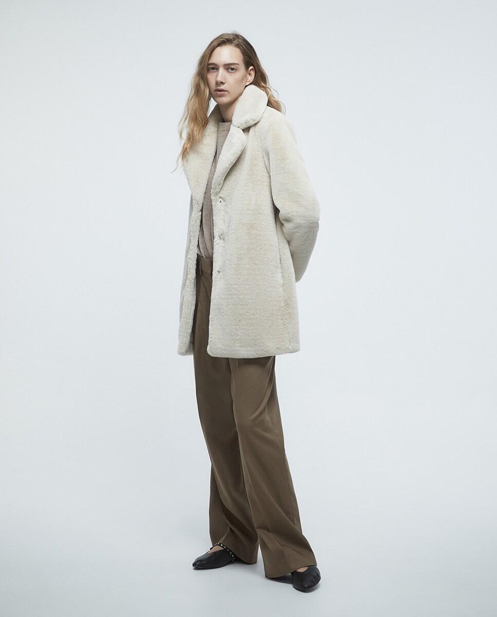 • Abrigo de efecto pelo y cuello solapa con cierre de botones a presión