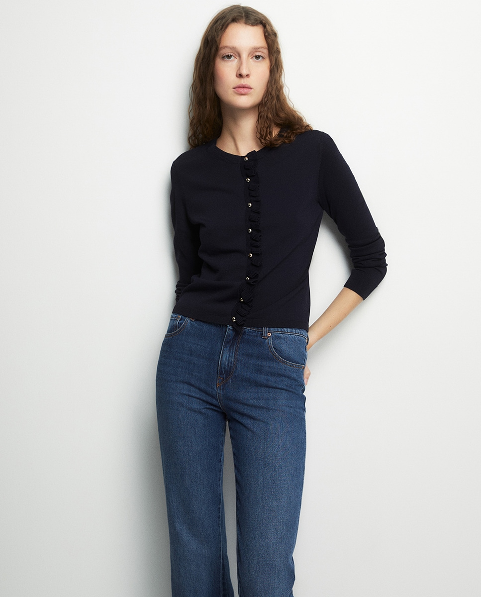 • Chaqueta de manga larga con cuello redondo y cierre de botones. Detalle de volantes