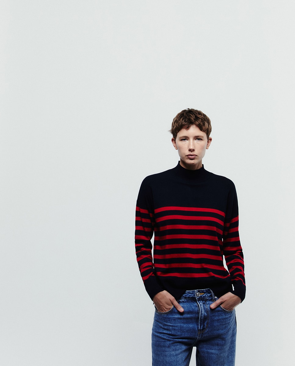 • Jersey de rayas a contraste con cuello alto