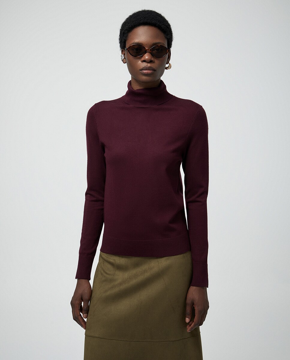 • Jersey liso de punto con cuello vuelto y manga larga