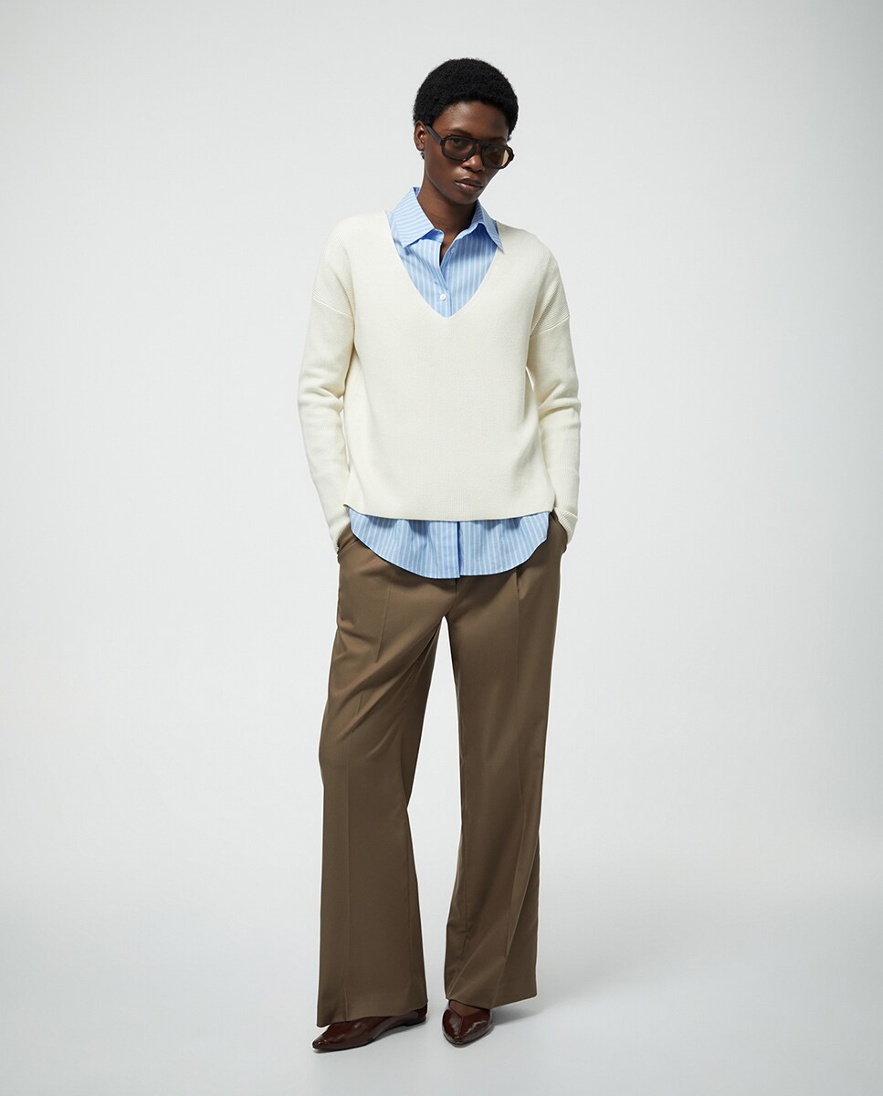 • Jersey de cuello redondo y manga larga con detalle de bajo a contraste