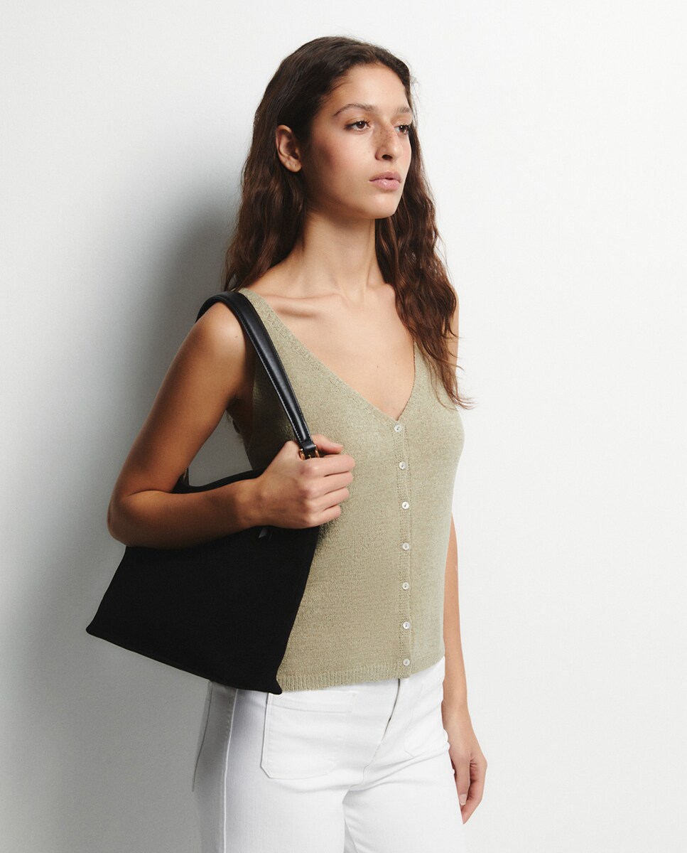 • Top de punto calado manga sisa. Detalle de volante en el bajo. Cierre frontal mediante botones