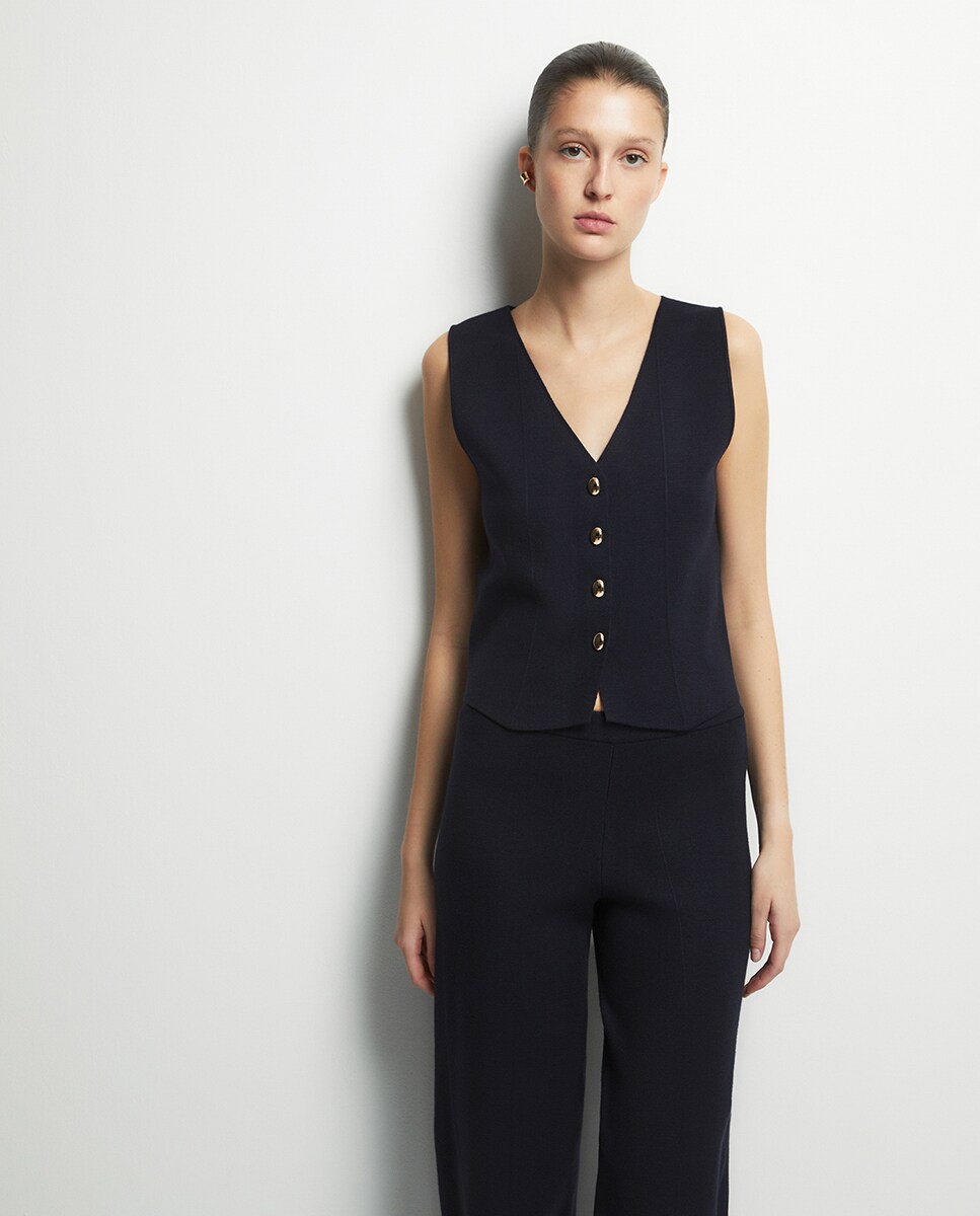 • Chaleco de punto con escote pico y cierre frontal de botones