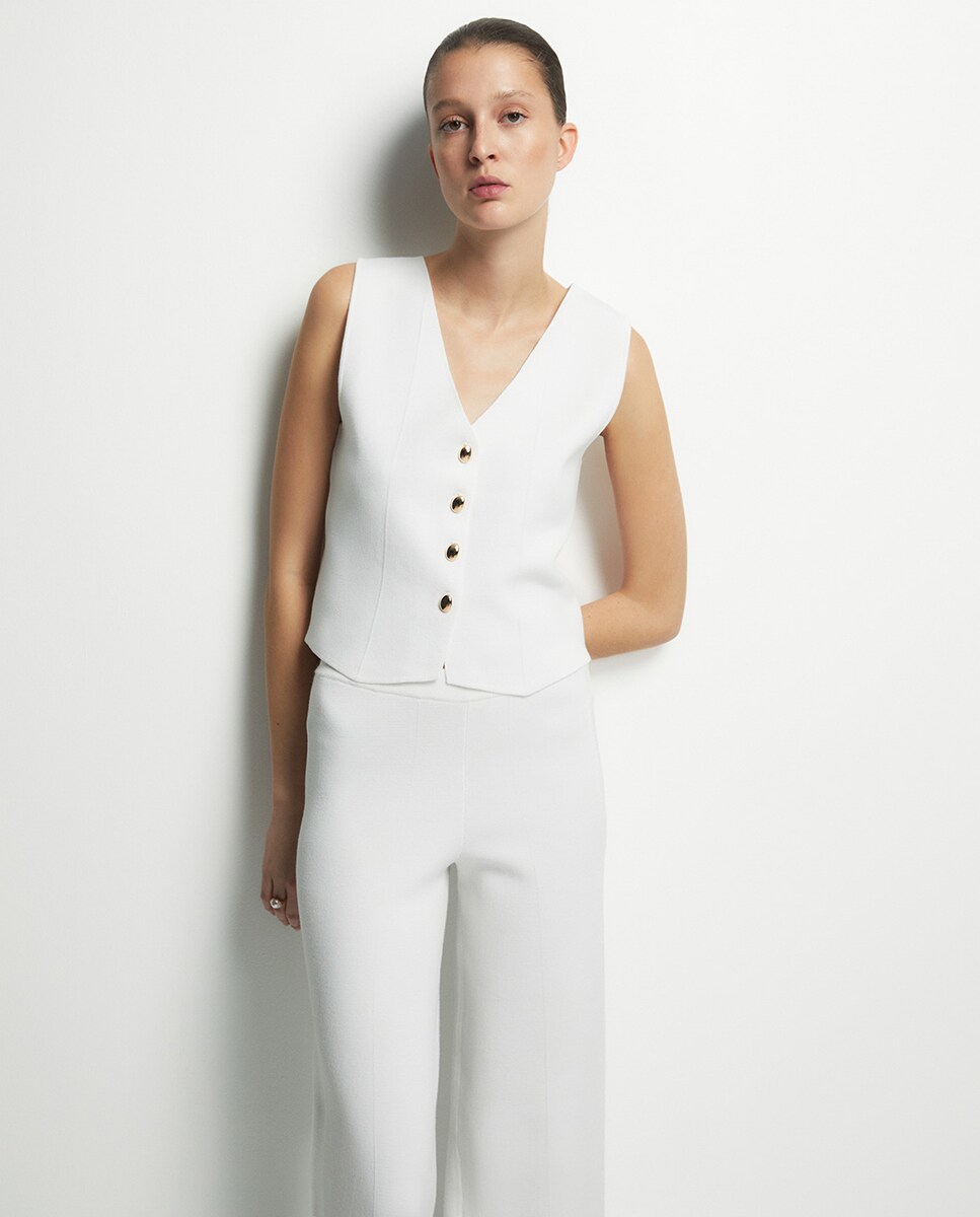 • Chaleco de punto con escote pico y cierre frontal de botones