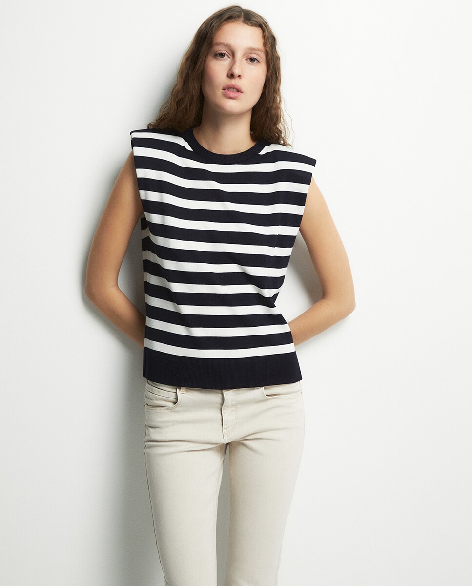 • Top de punto con cuello caja y manga sisa con hombrera