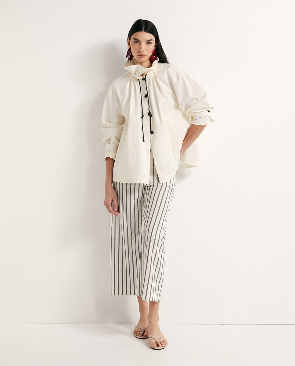 • Pantalón cropped de traje estampado. Cierre de cremallera oculta y corchete