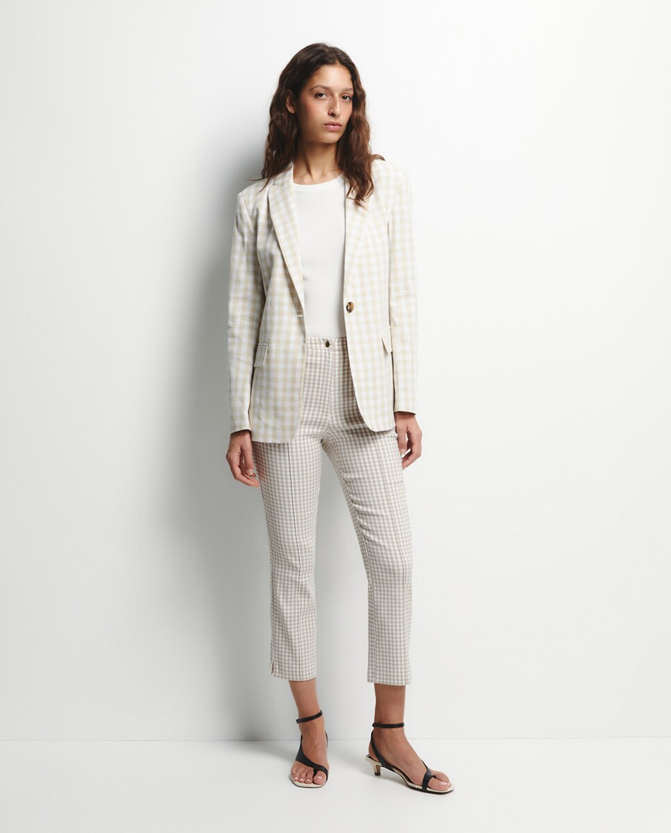 • Pantalón estampado de cuadros con abertura en bajo y cierre de cremallera oculta y botón