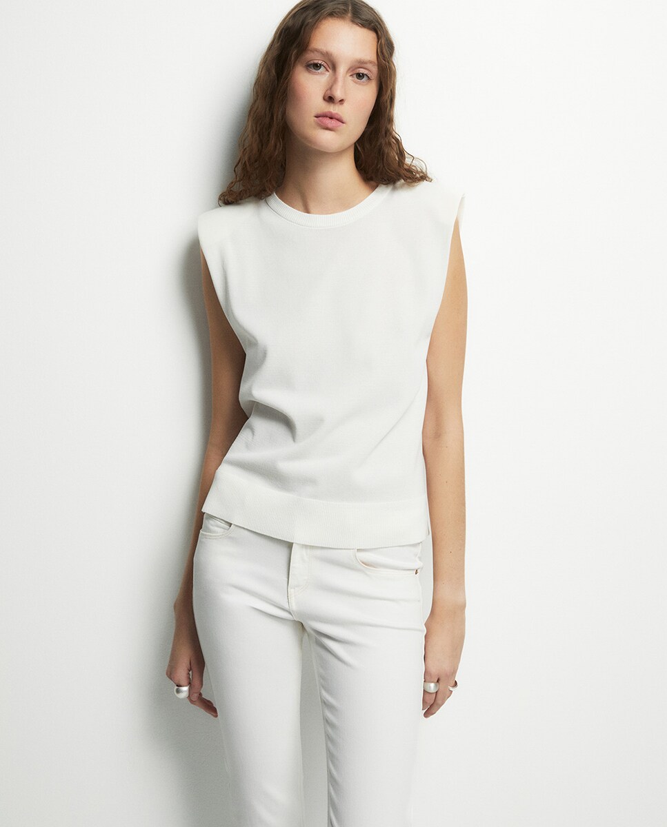 • Camiseta cuello caja y manga sisa con hombrera