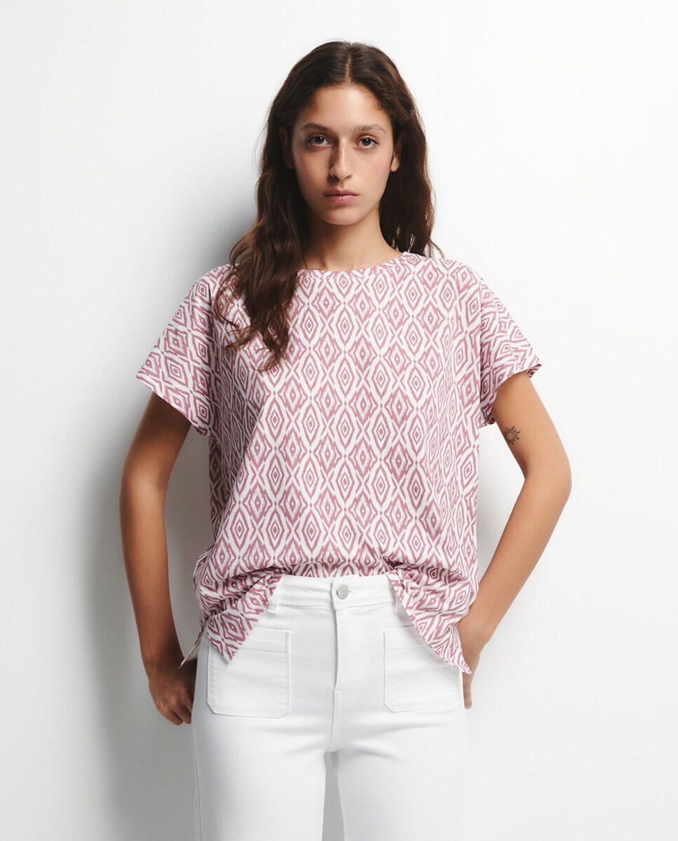 • Camiseta de manga corta y cuello redondo estampada. Algodón 100%