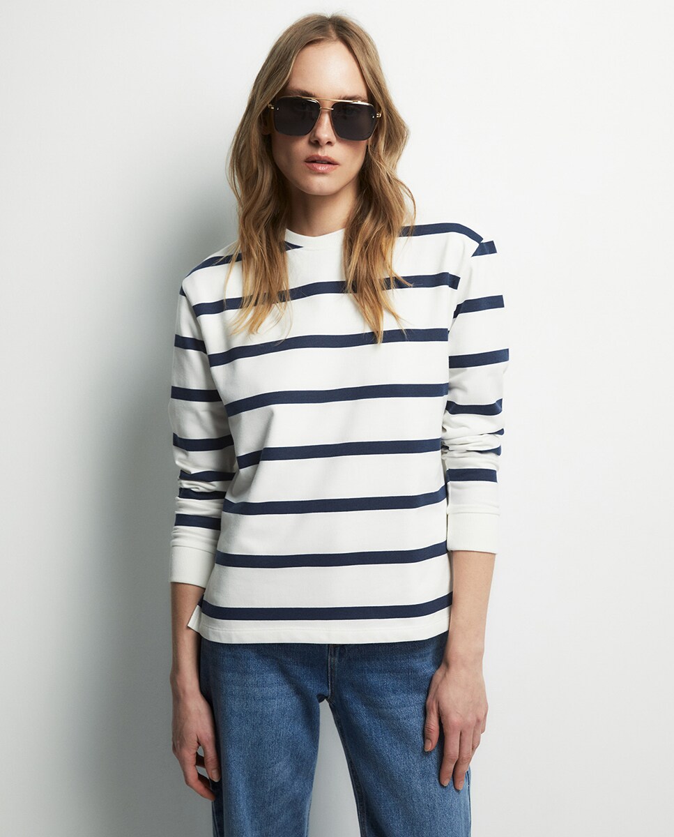 • Sudadera de manga larga con cuello redondo. Tejido en mezcla de algodón