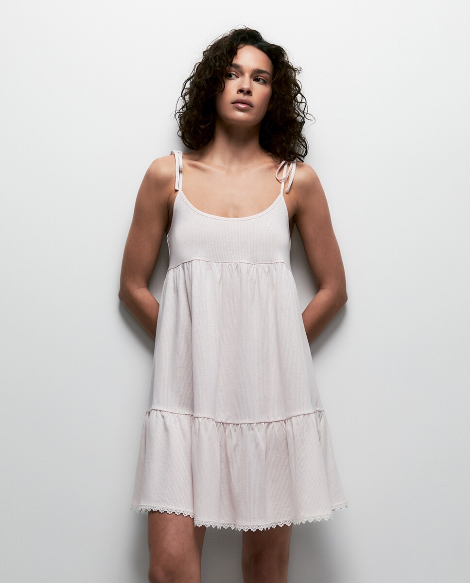 • Camisón corto con tirantes estampado de rayas. Algodón 100%