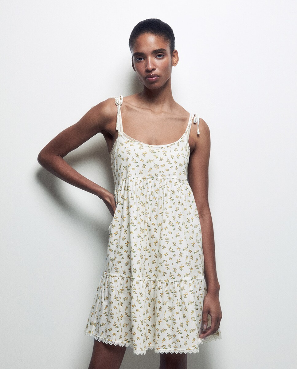 • Camisón corto con tirantes estampado de rayas. Algodón 100%