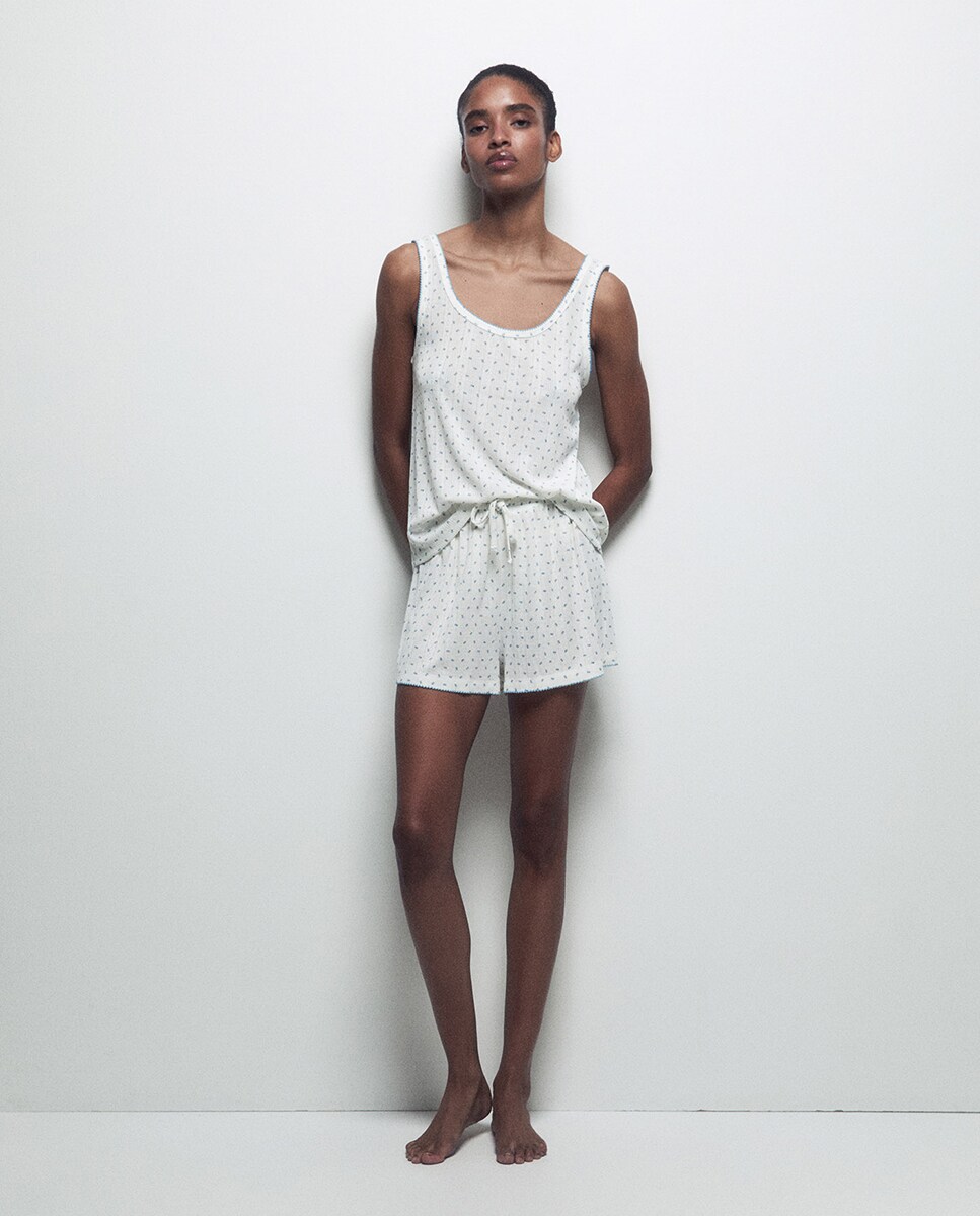 • Pijama corto de tirantes estampado. Cinturilla ajustable