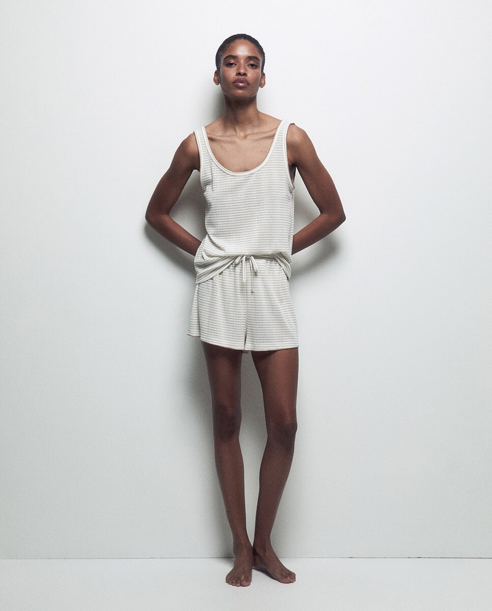 • Pijama corto de tirantes estampado. Cinturilla ajustable
