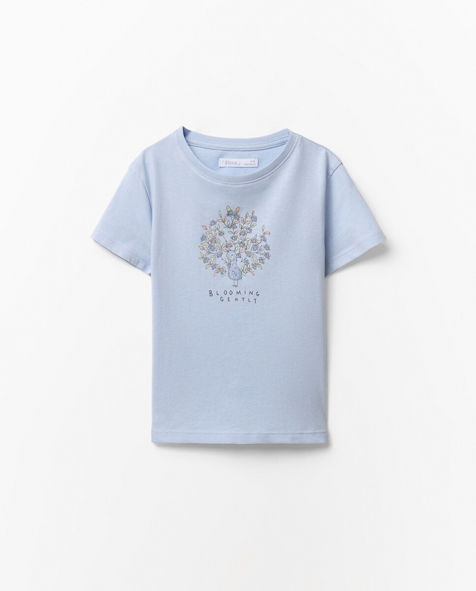 • Camiseta de manga corta y cuello redondo con detalle de dibujo estampado. Algodón 100%