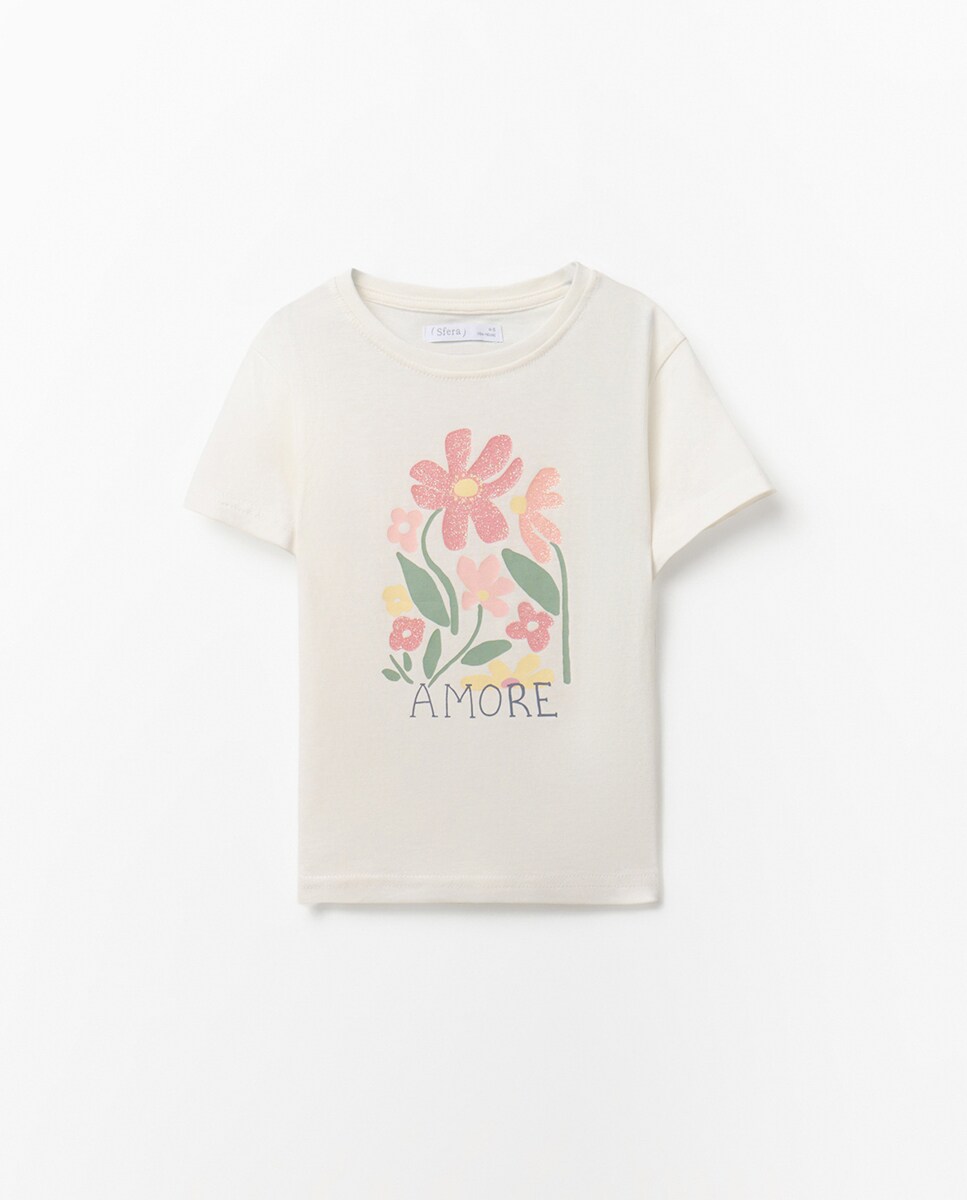 • Camiseta con cuello redondo y manga corta con estampado en delantero. Algodón 100%