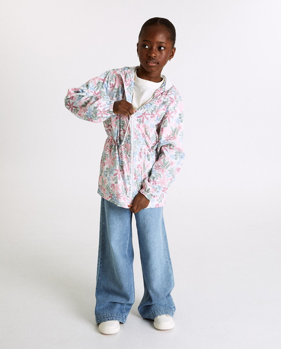 • Chubasquero de flores con capucha. Cierre frontal de cremallera. Bolsillos