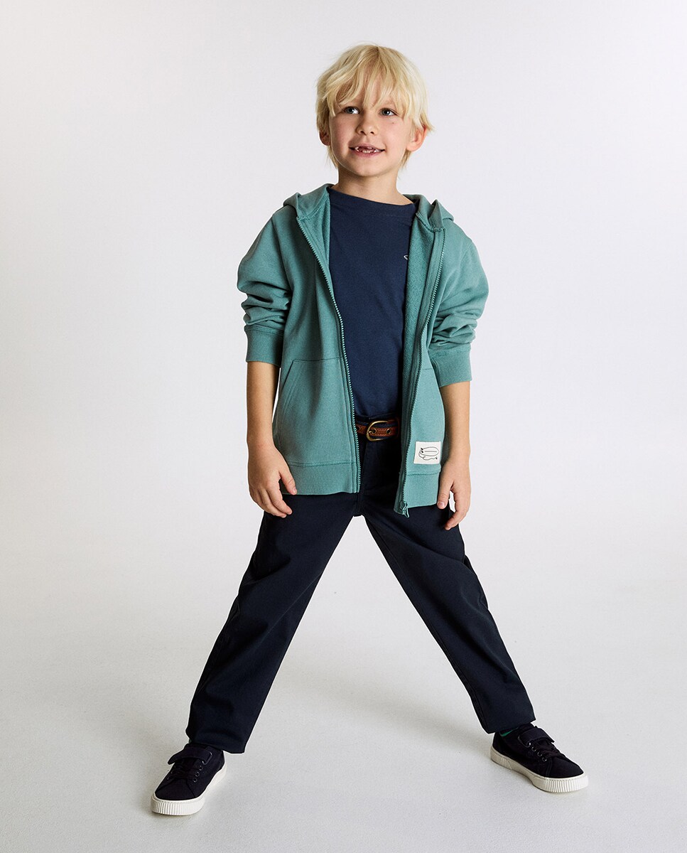 • Sudadera básica con capucha y cierre de cremallera. Bolsillos frontales