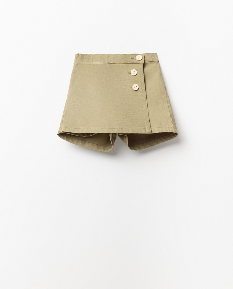 • Falda pantalón con bolsillos vistos y botones. Algodón 100%