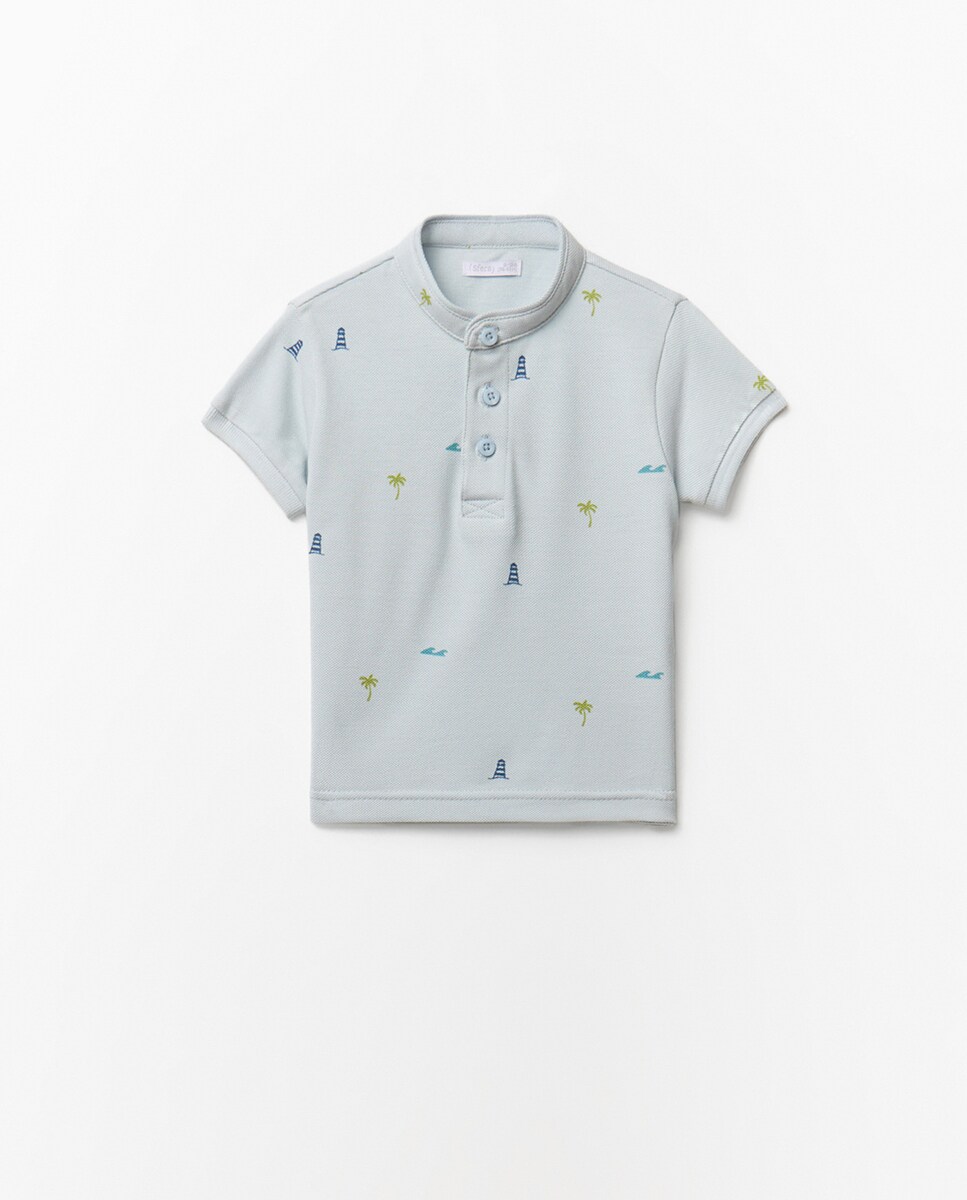 • Polo estampado con cuello mao y manga corta. Cierre de botones. Algodón 100%