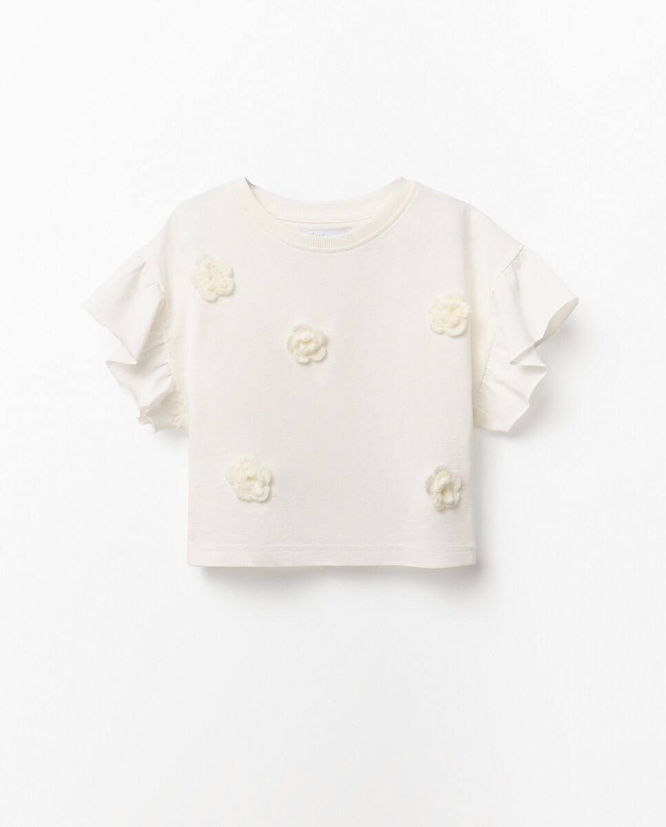 • Camiseta con cuello redondo y manga corta con volante. Algodón 100%