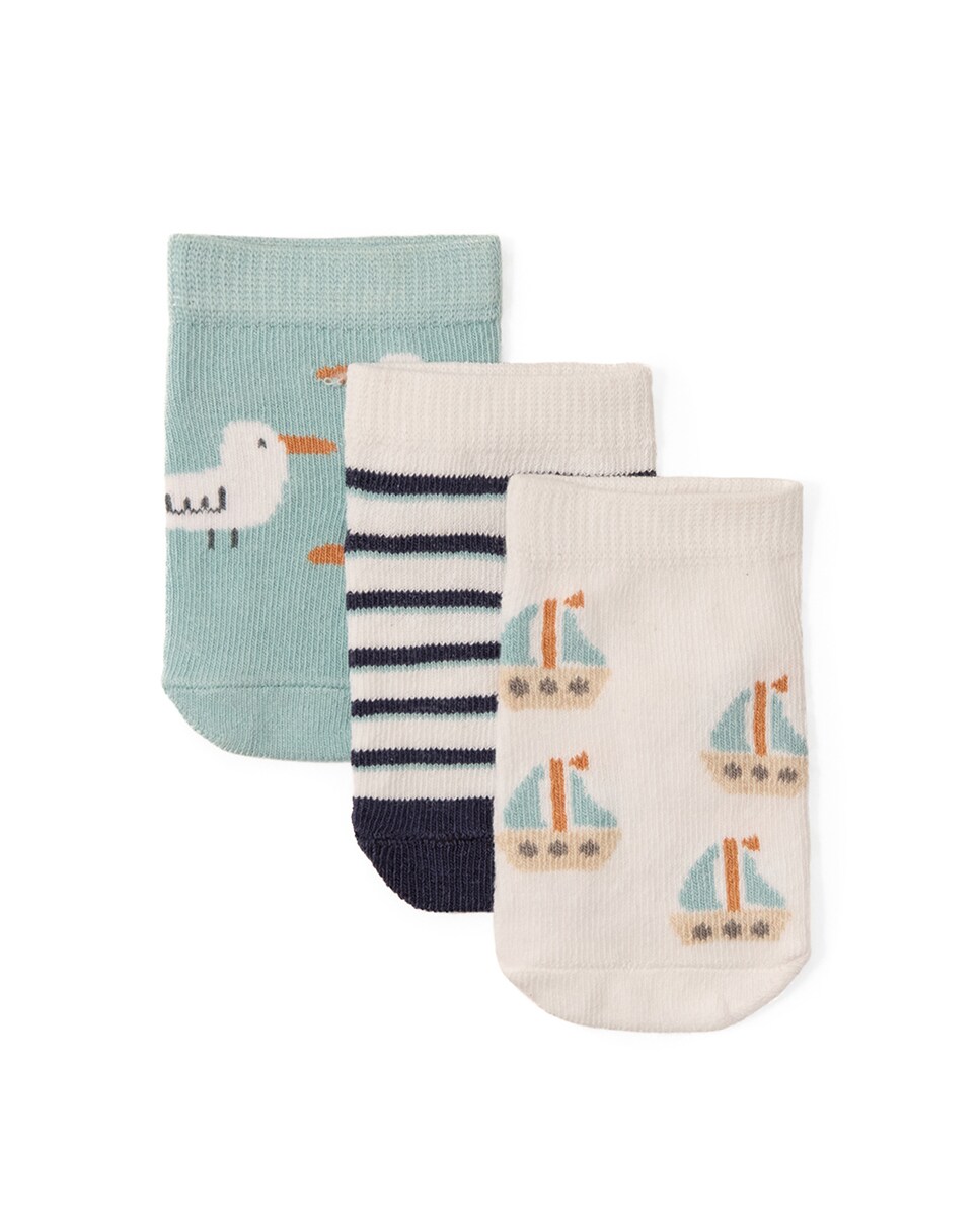 • Pack de tres calcetines con motivo de barco y rayas