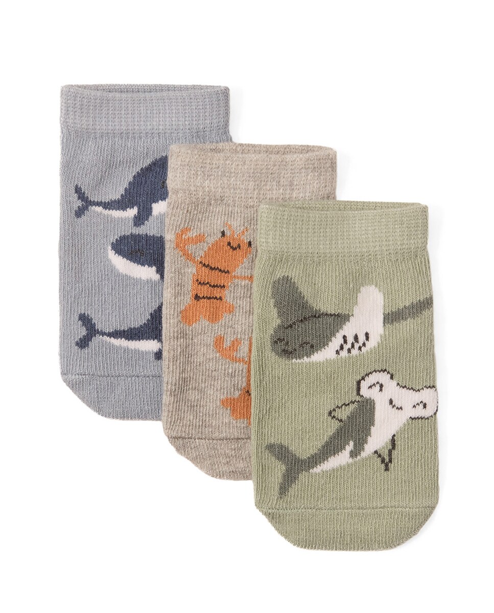 • Pack de tres calcetines con dibujos de fondo del mar, animales variados