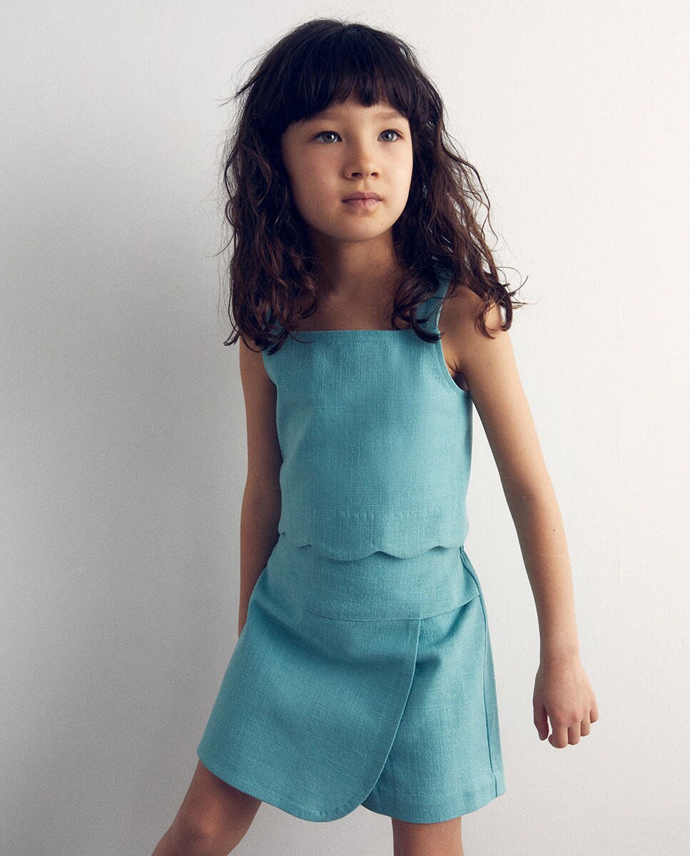 • Falda pantalón corta con detalle de fruncido. Algodón 100%