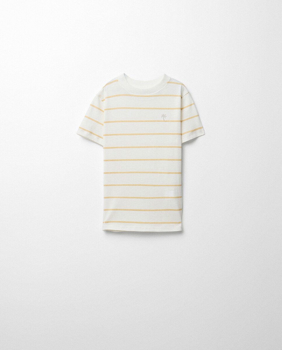 • Camiseta de manga corta de rayas con detalle bordado. Algodón 100%