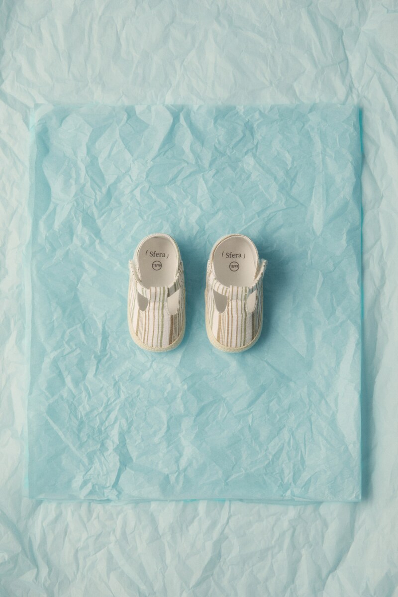 • Patuco tipo zapato en forma de T estampado. Cierre mediante tira adherente en el lateral. Suela de tela blanda