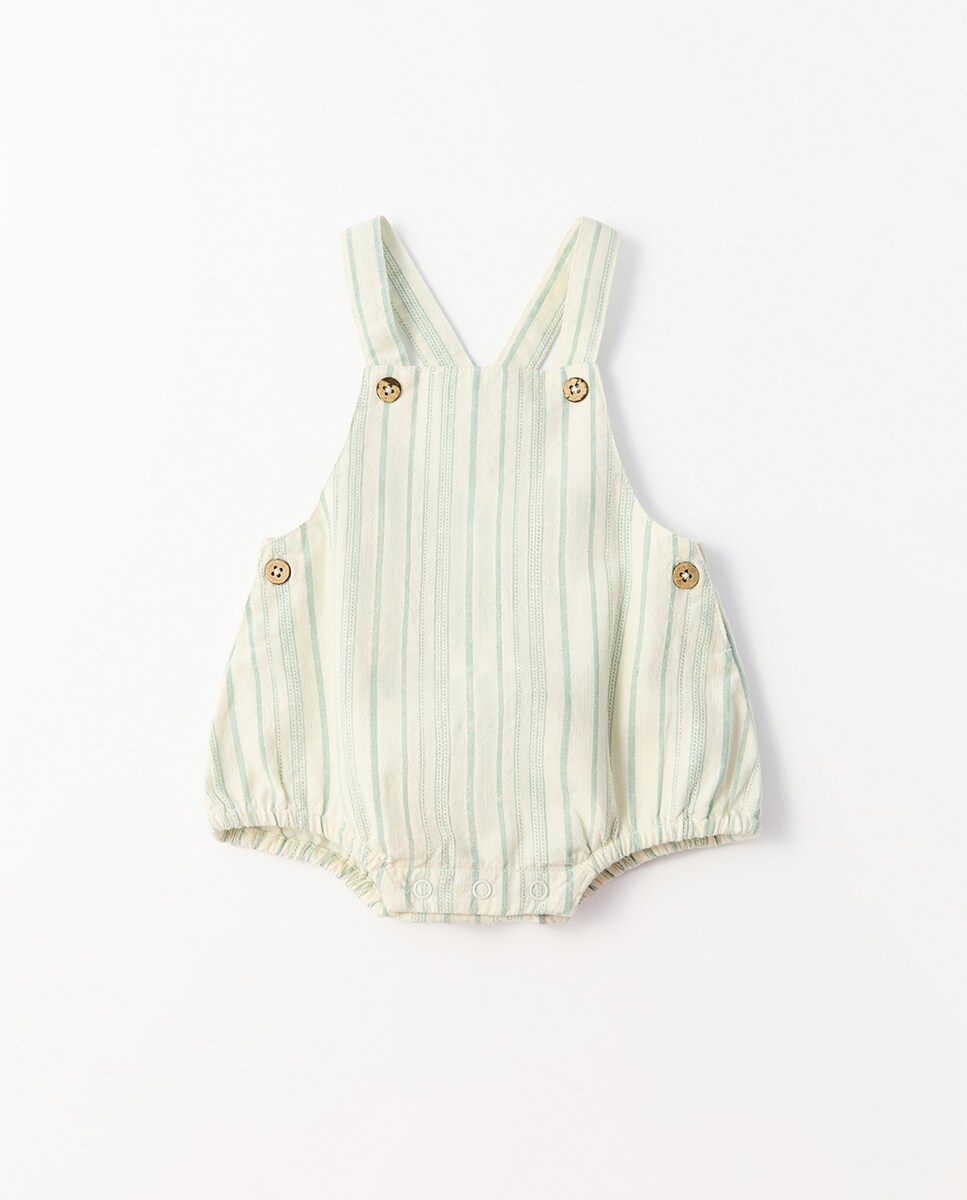 • Peto de rayas bordada de tirantes con botones. Cierre en clip. Algodón 100%