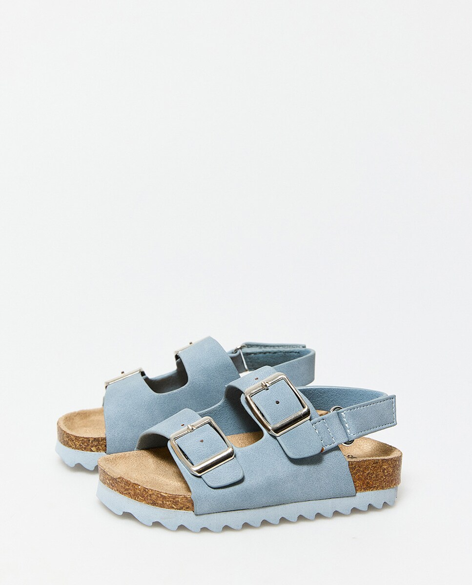• Sandalia plana bio con doble hebilla y cierre trasero adherente mediante tira