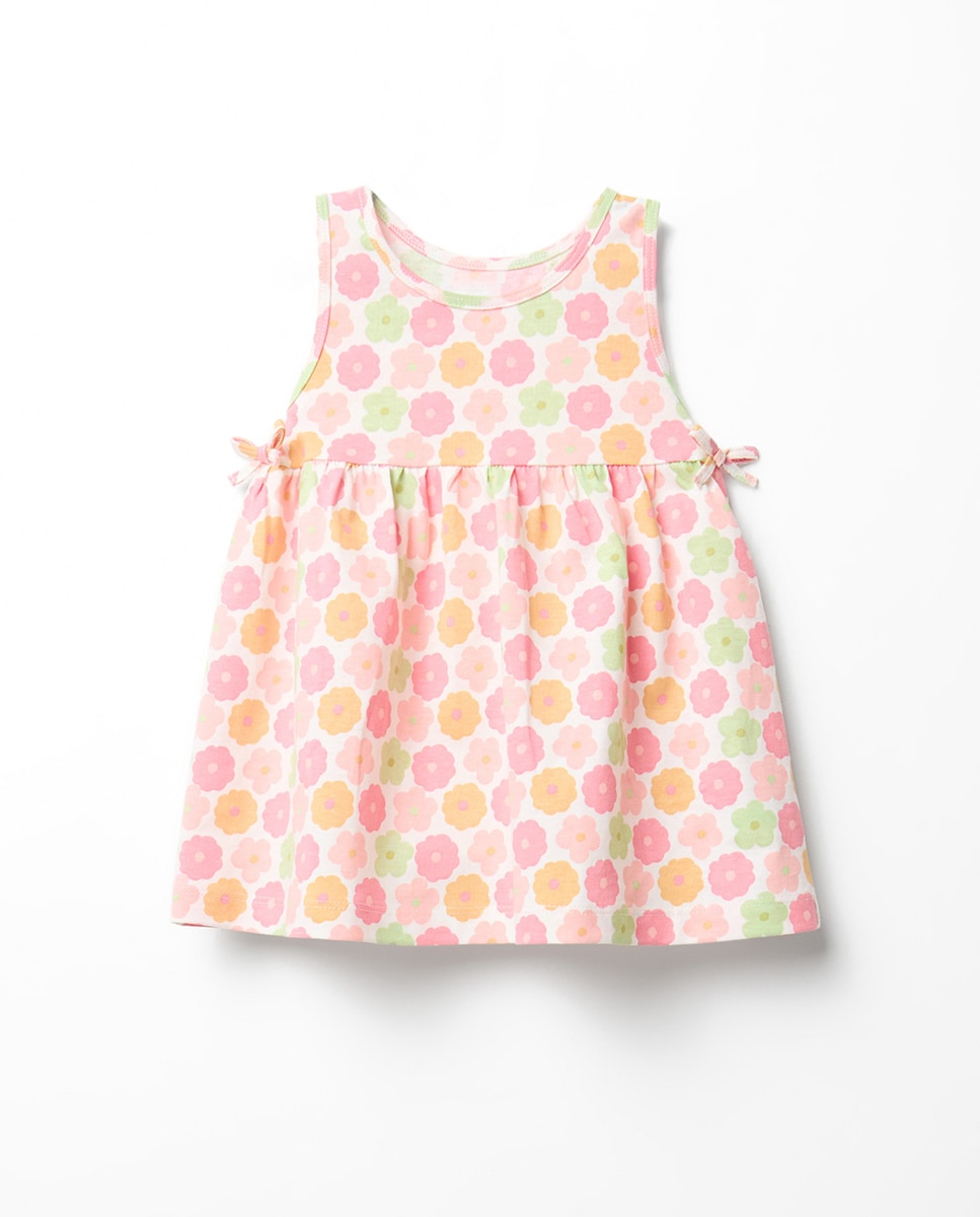 • Vestido manga sisa y cuello redondo con detalle de lazos laterales. Tejido 100% algodón