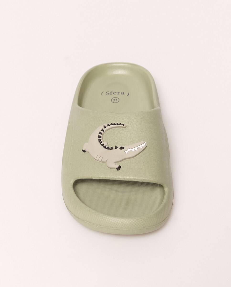 • Chancla plana con volumen y detalle de cocodrilo