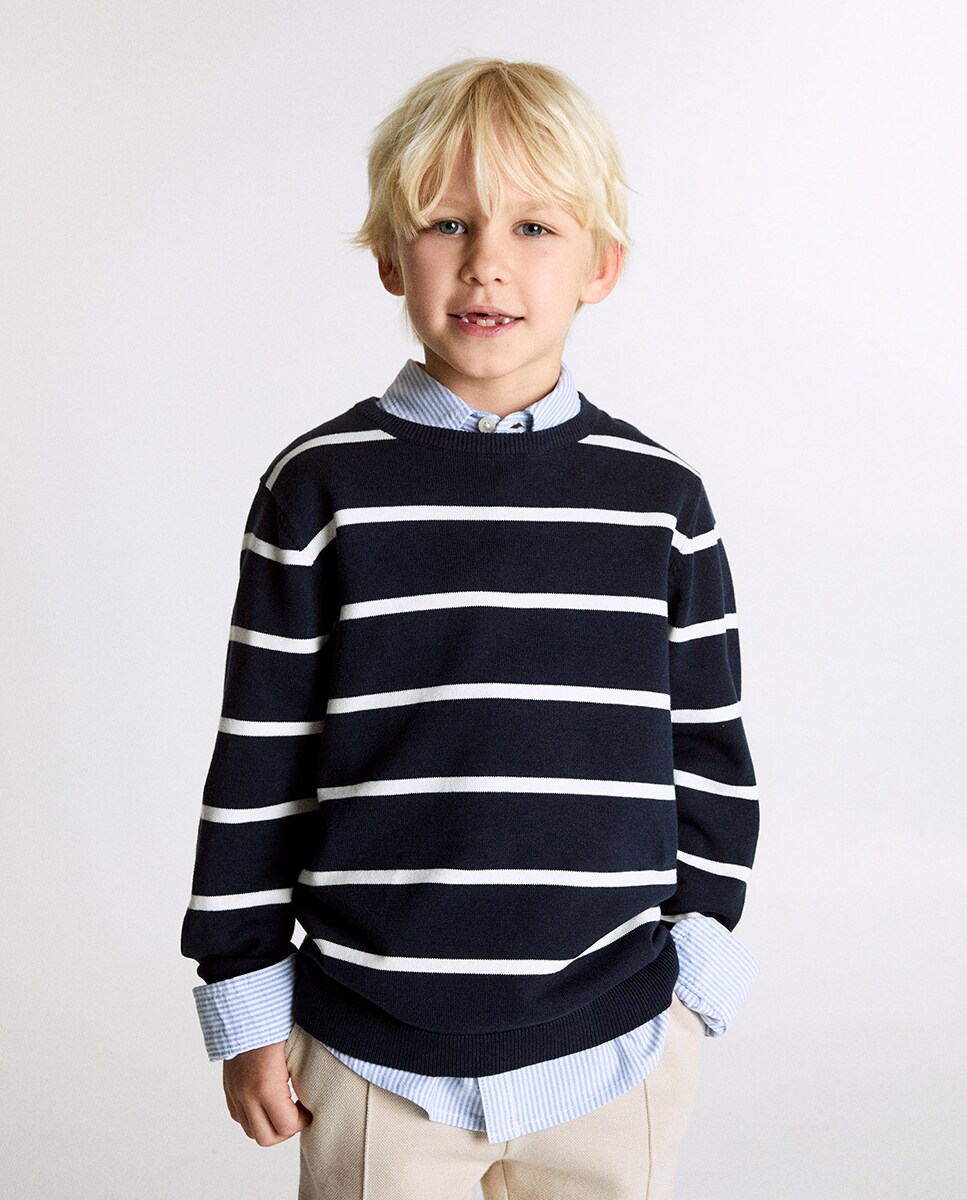 • Jersey con cuello caja y manga larga en algodón. Detalle de rib en cuello, mangas y bajo