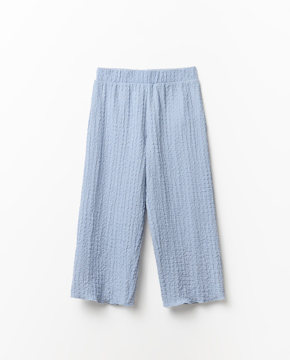 • Pantalón largo de efecto arrugado con goma en cintura