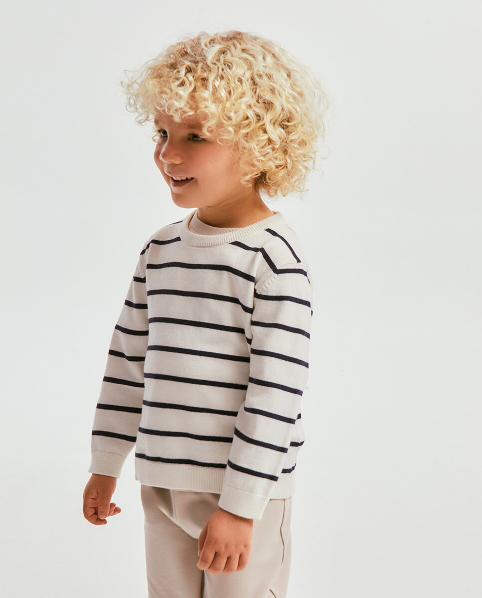 • Jersey con cuello redondo y manga larga de rayas