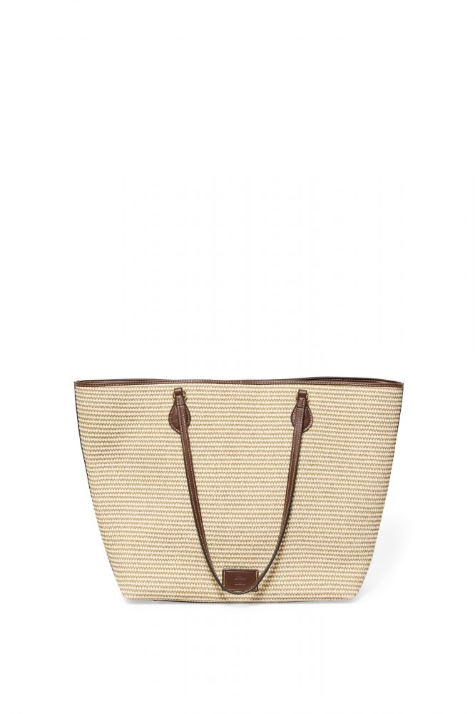 Mixed-media raffia shopper bag