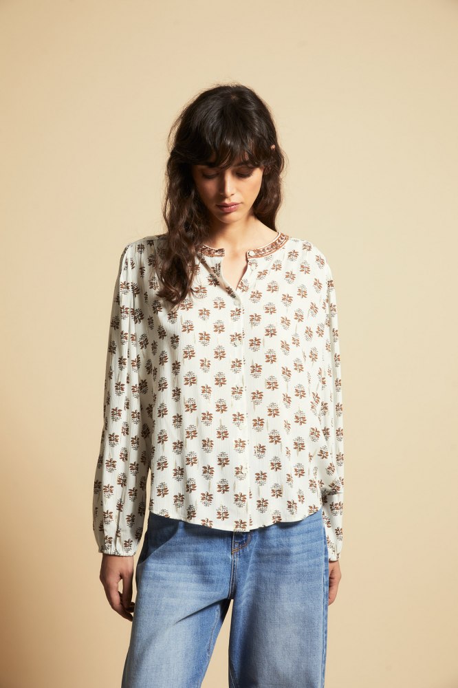 Blusa bordados contraste