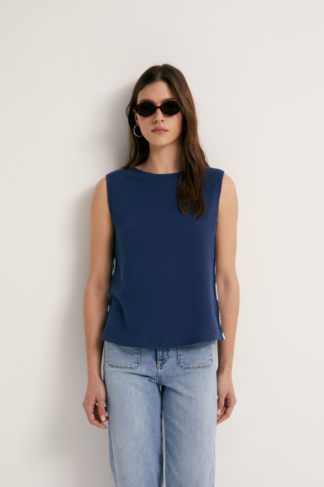 Top bordado bicolor