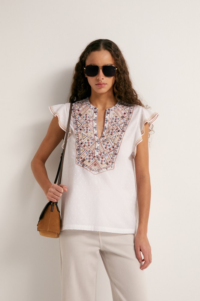 Blusa bordada troquelada