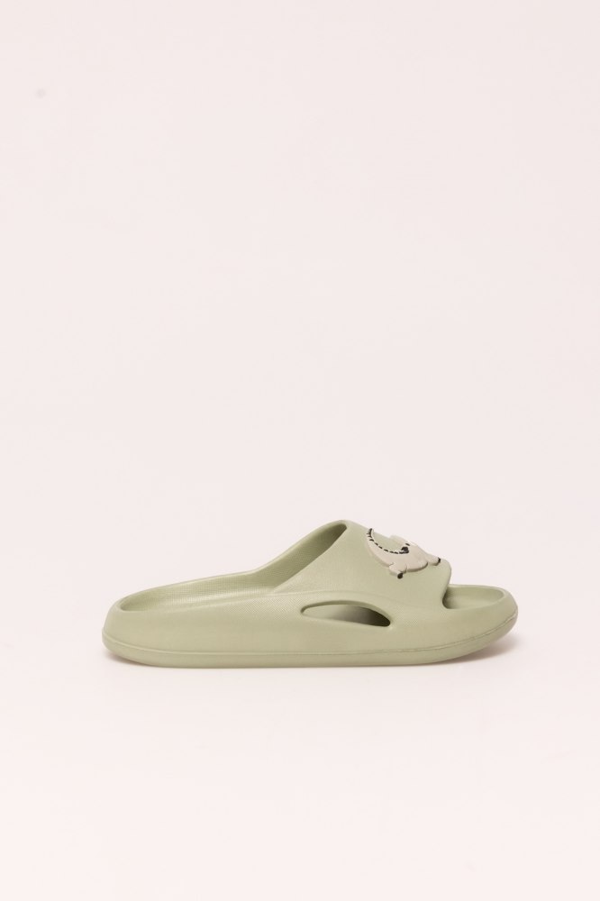 Chunky crocodile charm pool sliders