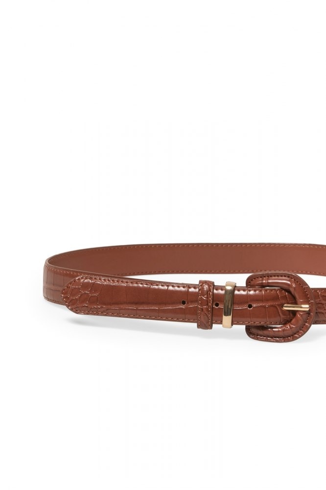 Wide snakeskin-effect belt