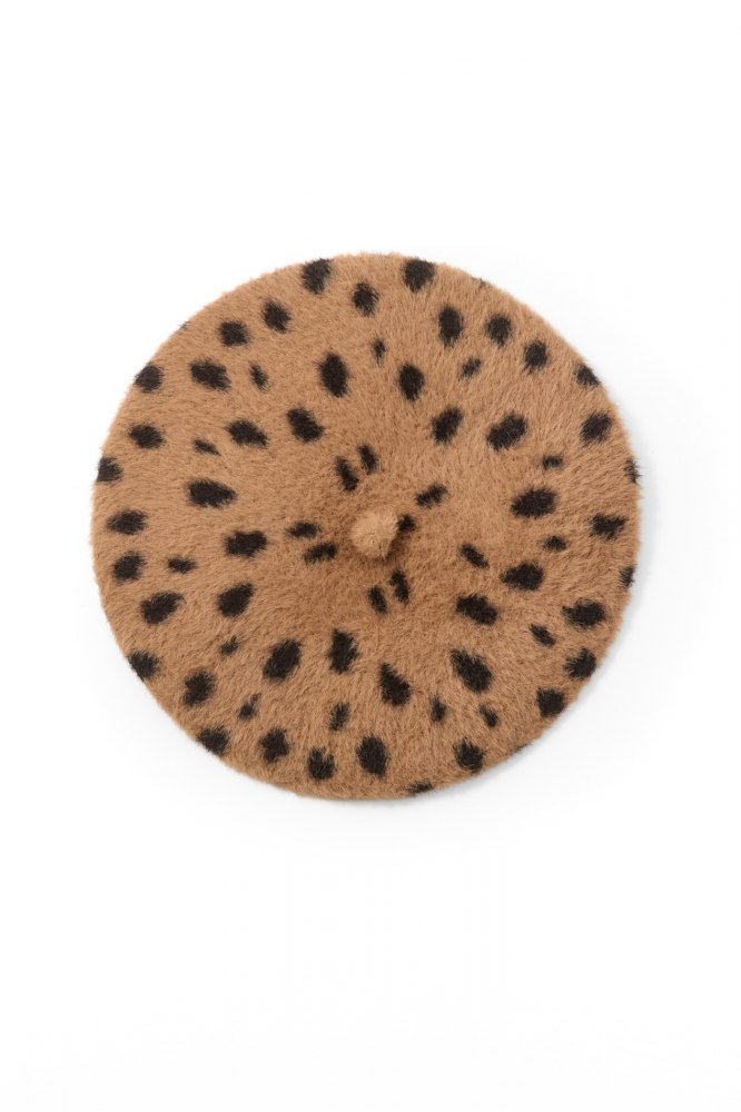 Fluffy leopard-print beret
