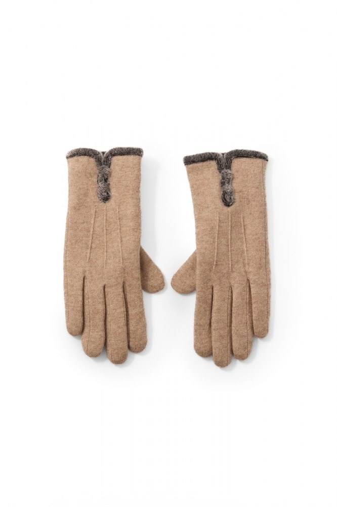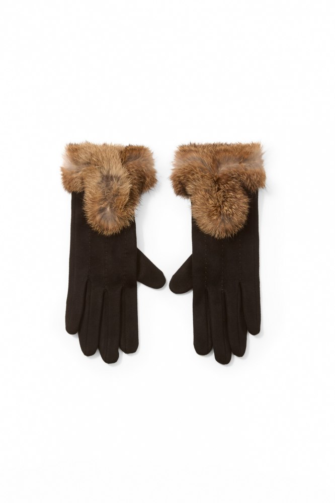 Colour-matched fur appliqué gloves