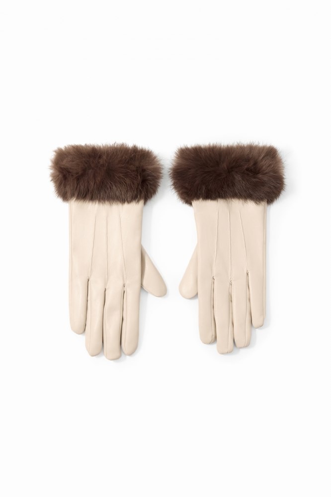 Scooped wrist fur gloves